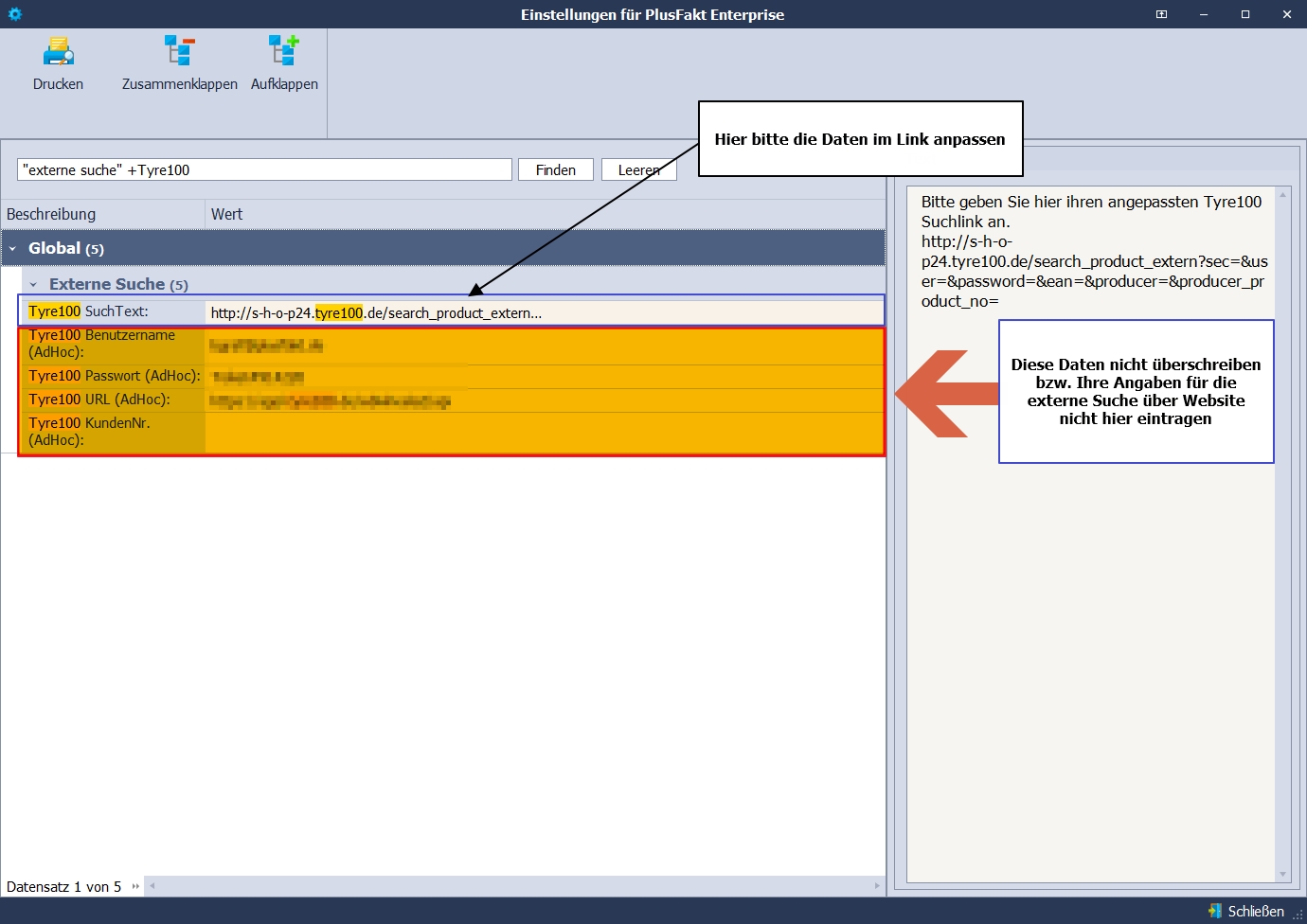 BEACHTEN Sie bitte unbedingt, dass Sie NICHT die erforderlichen Nutzerdaten bei den AdHoc-Einstellungen eintragen. Für die externe Suche über Weblink werden andere Zugangsdaten benötigt als für die AdHoc-Abfrage!
