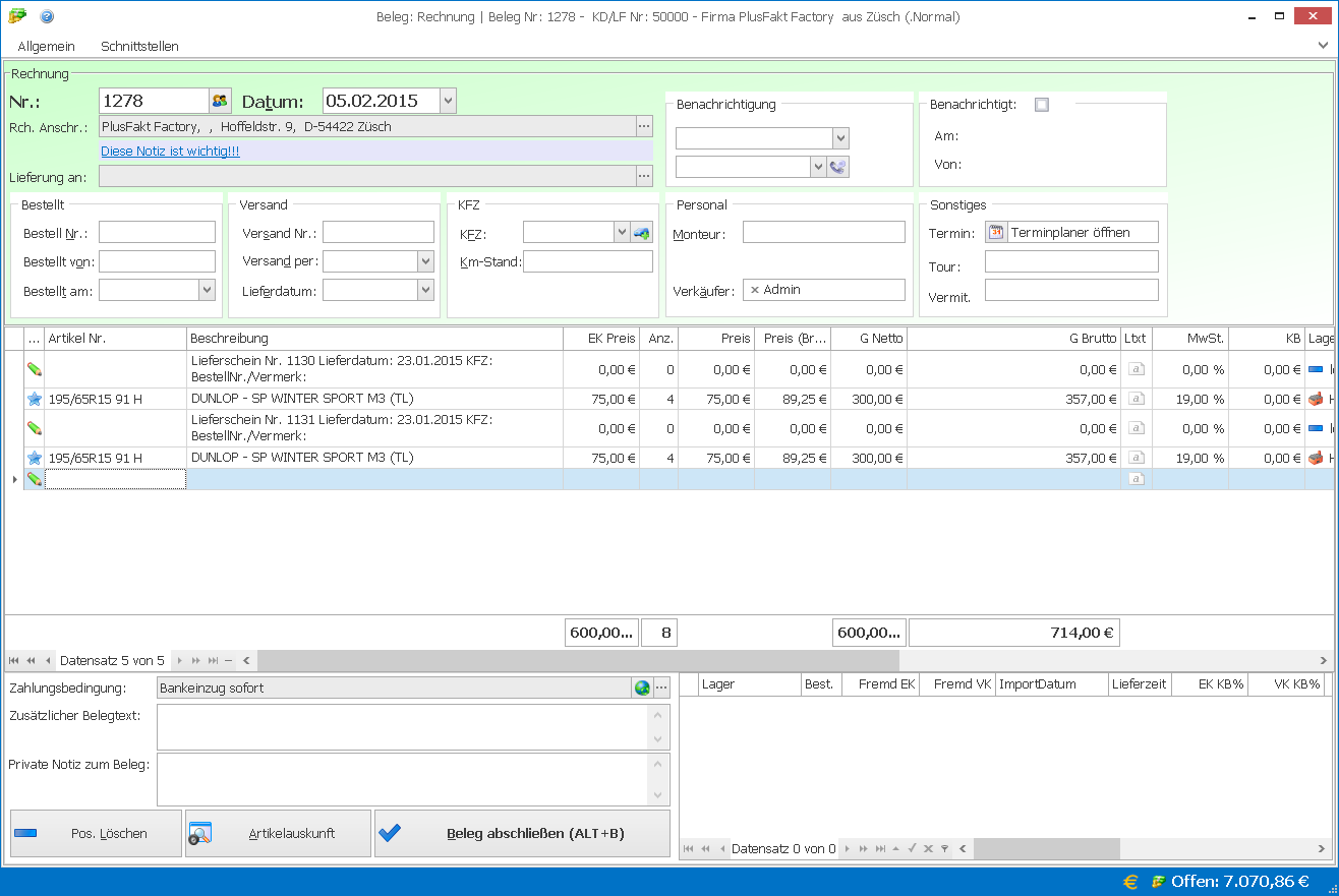 Navigation: Hilfen > PlusFakt Enterprise > Sammelrechnungen erstellen